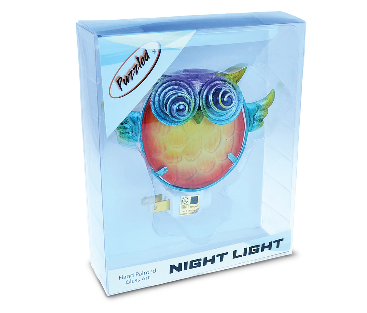 Puzzled Glass Art Night Light, Plug in Decorative Socket Lamp, Manual On & Off Portable Light for Stairway, Bedroom, Bathroom, Nursery, Home Accessory & Kitchen Decor - Owl